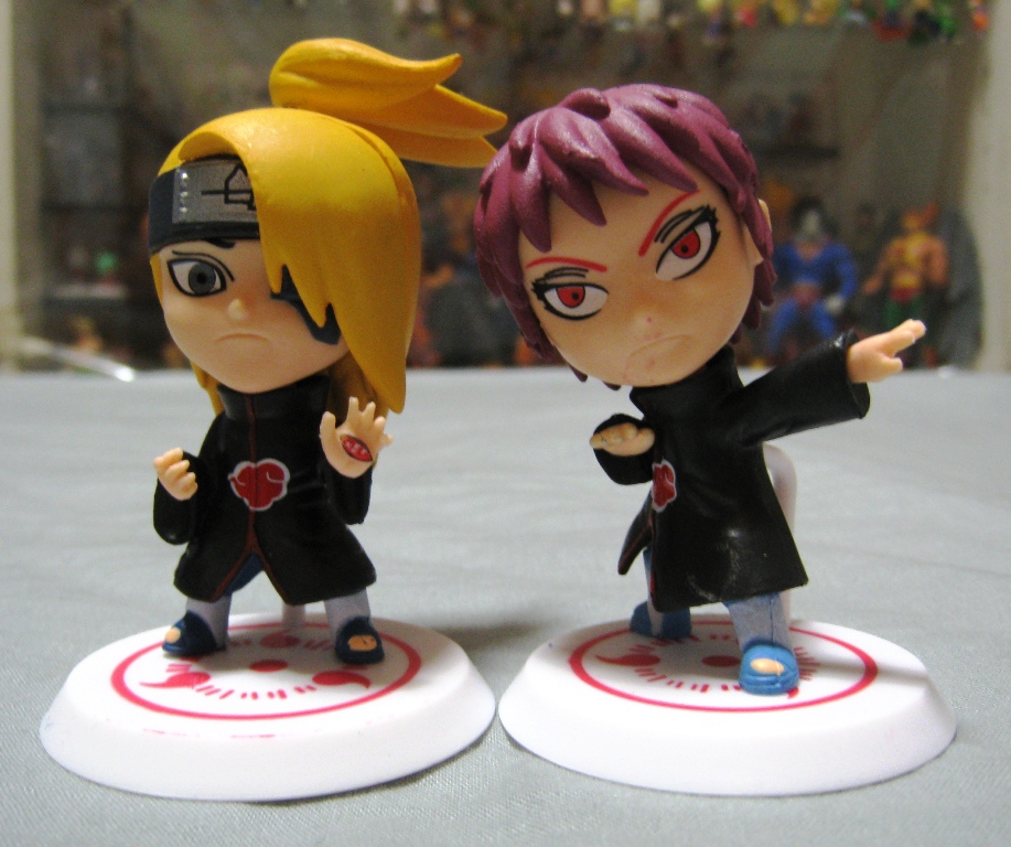 Went CSC last Sunday and got myself this set of Akatsuki Chibi style figurines. Ok first of all, I do not know who manufactured this because I have not seen any of this available in the market. It could be a bootleg or a custom done by some unknown company. But nevertheless, I still bought them because I have always wanted to collect all the figures of Naruto characters. Since the Akatsuki Team work in a team of 2, I will intro them, 2 by 2.